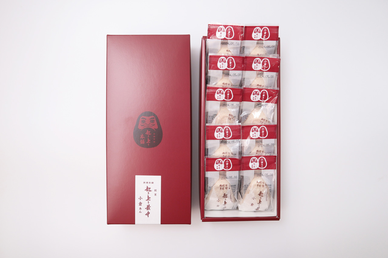 「起き上り最中」は、戦後まもなく岐阜・柳ヶ瀬で生まれた、縁起の良いだるまの形をした最中です。