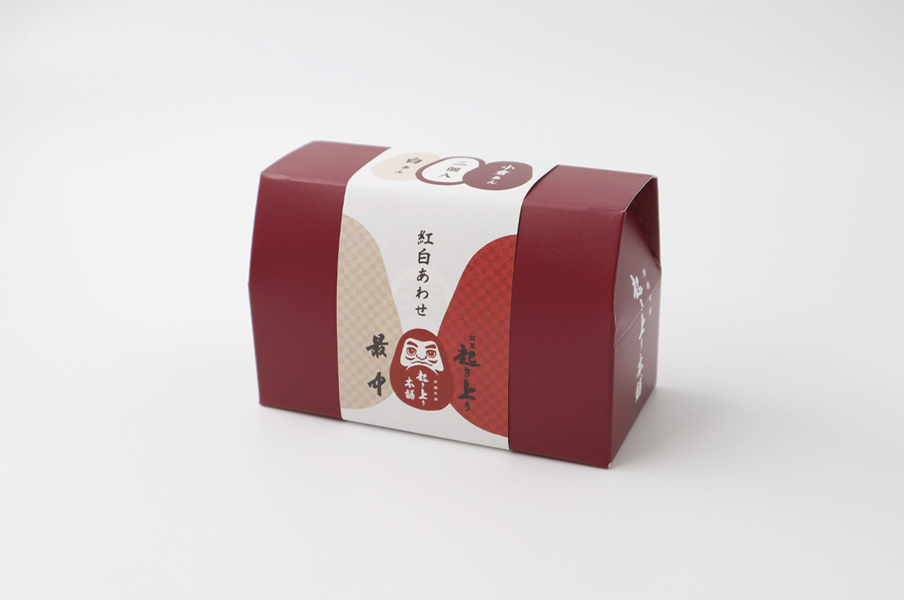 「起き上り最中」は、戦後まもなく岐阜・柳ヶ瀬で生まれた、縁起の良いだるまの形をした最中です。