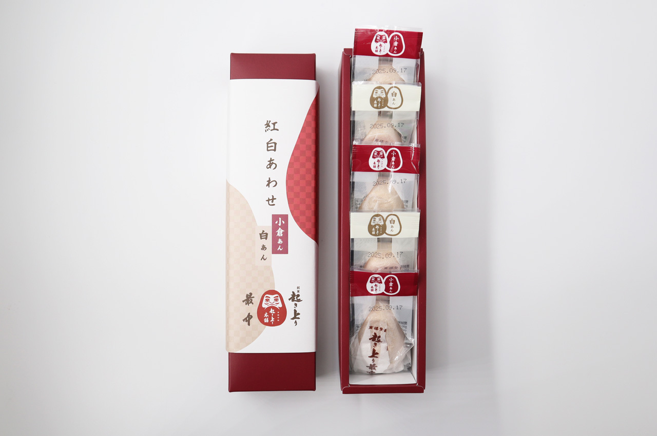 商品名:起き上り最中 紅白あわせ 5個(小倉あん3個・白あん2個)