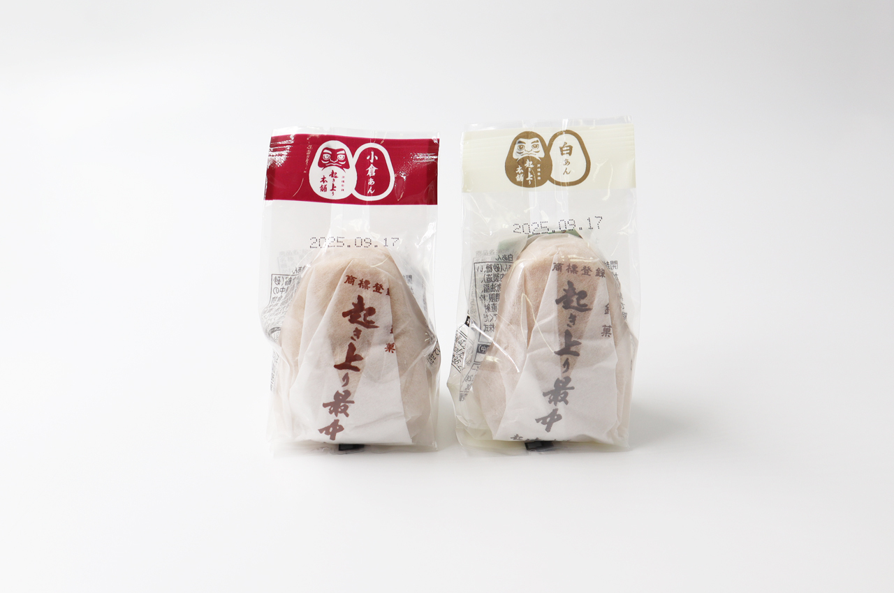 「起き上り最中」は、戦後まもなく岐阜・柳ヶ瀬で生まれた、縁起の良いだるまの形をした最中です。